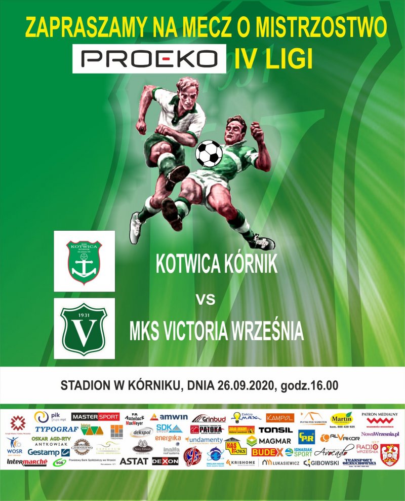 ![]() ![]() PROEKO IV liga 2020-09-22Zapraszamy do Kórnika, początek spotkania w sobotę 26.09.2020 r. o godz.16.00